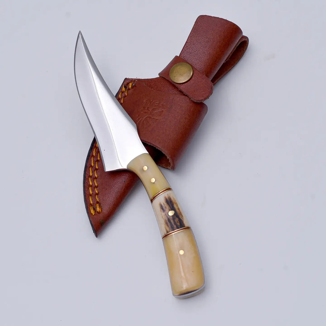 Walnut & Torched Bone Damascus Pocket Knife