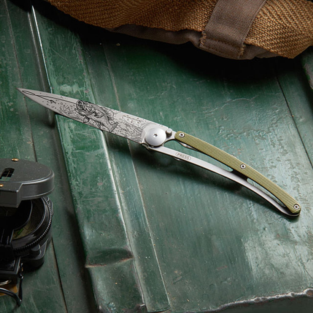 Green Khaki Aluminum Folding Knife | Bass Fishing