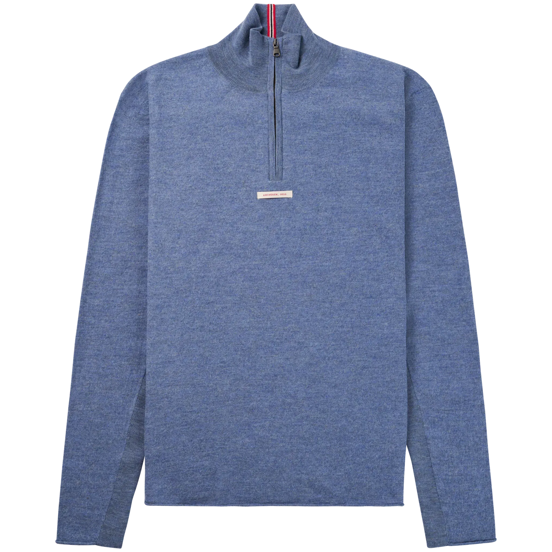 Crafted from 100% boiled merino wool with stretch knit panels, this half-zip sweater delivers exceptional warmth and wind resistance. Perfect as a standalone layer on crisp days or as insulation beneath a shell in harsher conditions.