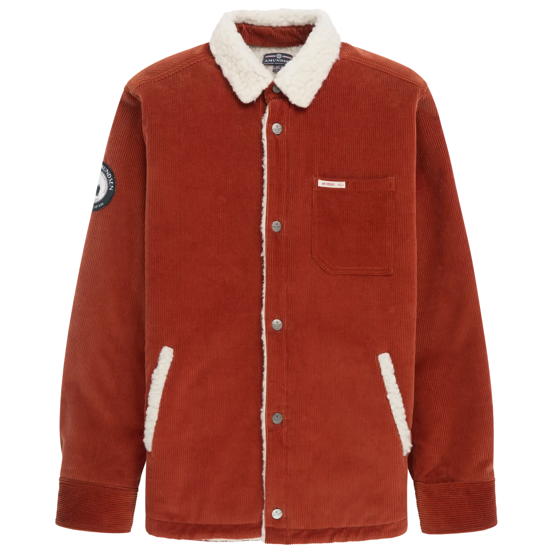 Overshirt in water-resistant stretch cotton corduroy from Cosserat Company, France. Lined with wool fleece from Pontetorto, Italy.