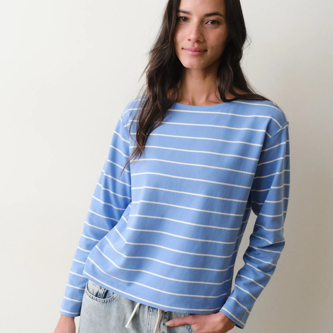 Luxe Sueded Mariner Tee | Cobalt Stripe